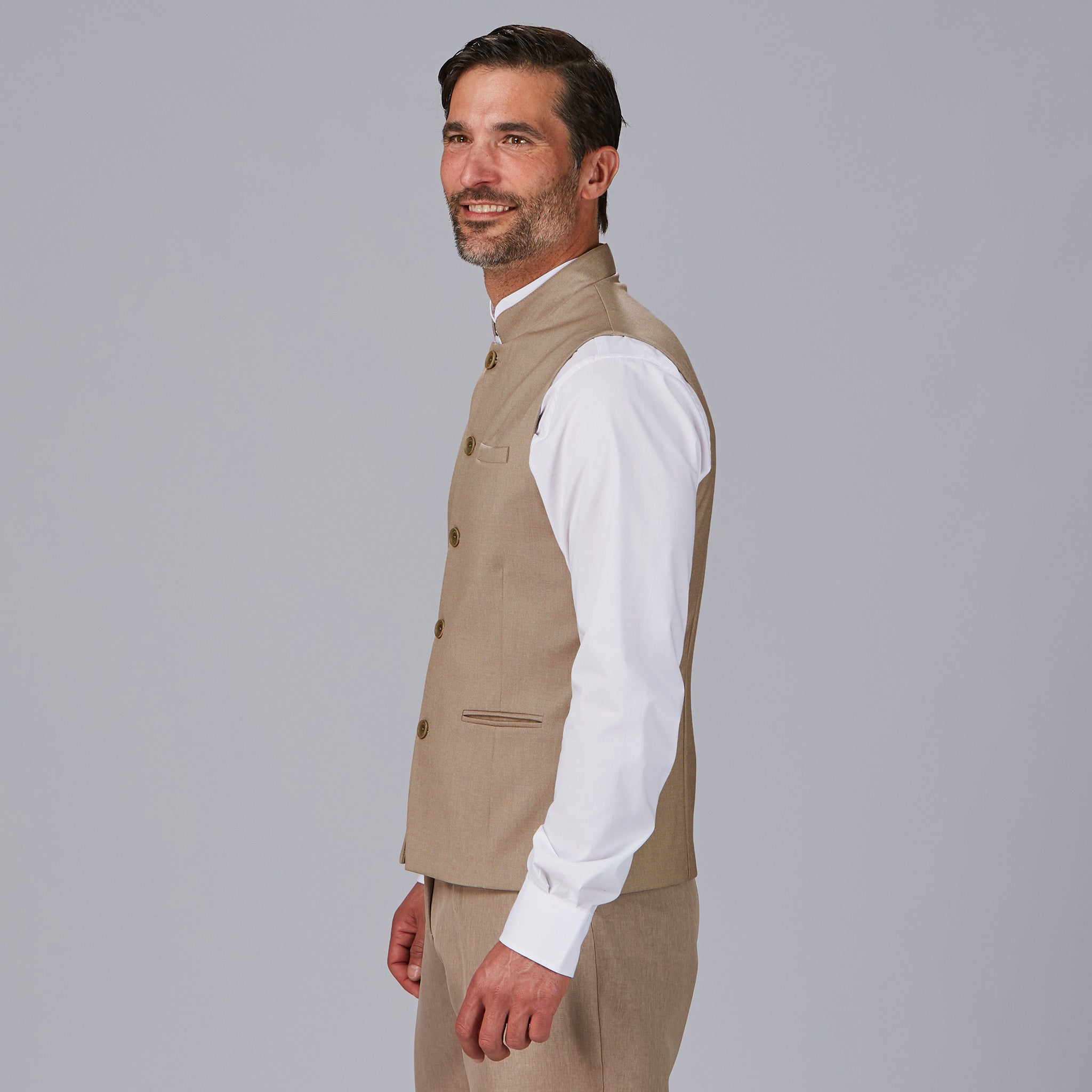 El Chaleco Hombre Giron combina diseño contemporáneo y funcionalidad en una prenda imprescindible para el sector de la hostelería, restauración y atención al público. Su corte semi ajustado (H2) y su cuello mao aportan una imagen moderna y sofisticada, perfecta para quienes buscan destacar con un uniforme con carácter.