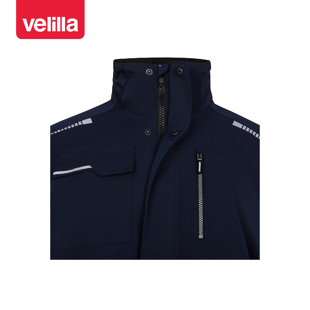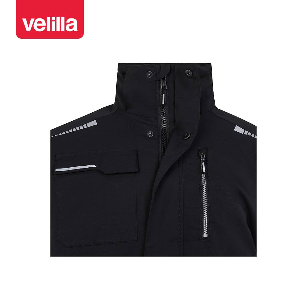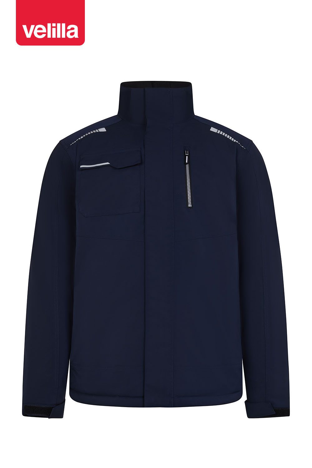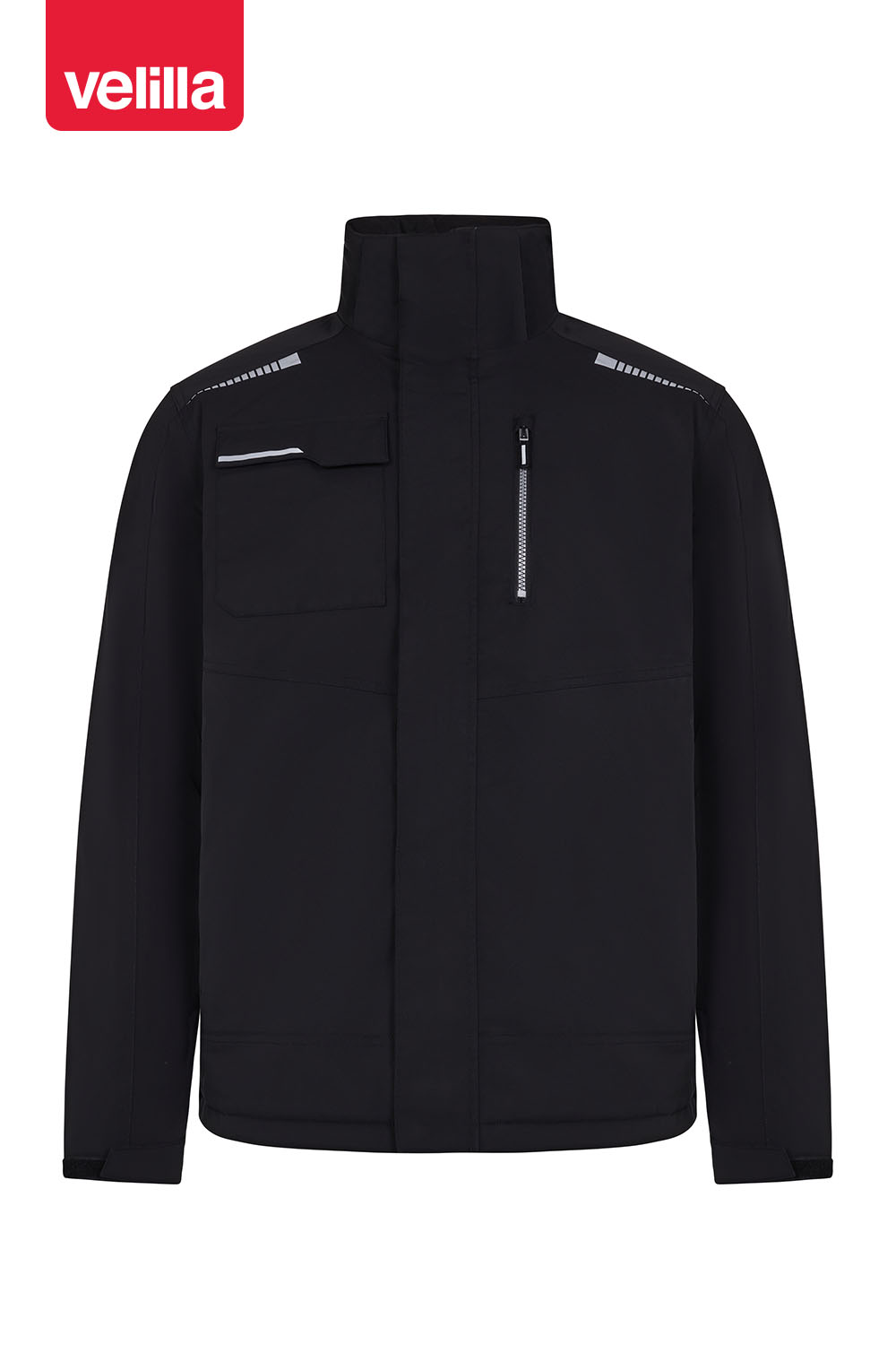 • 1 bolsillo izquierdo en pecho con cremallera y tirador reflectante;