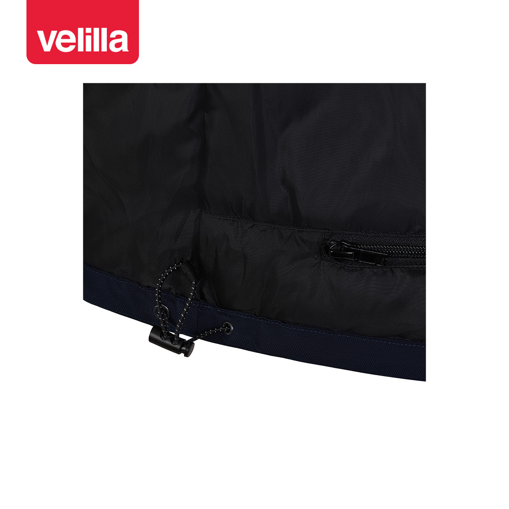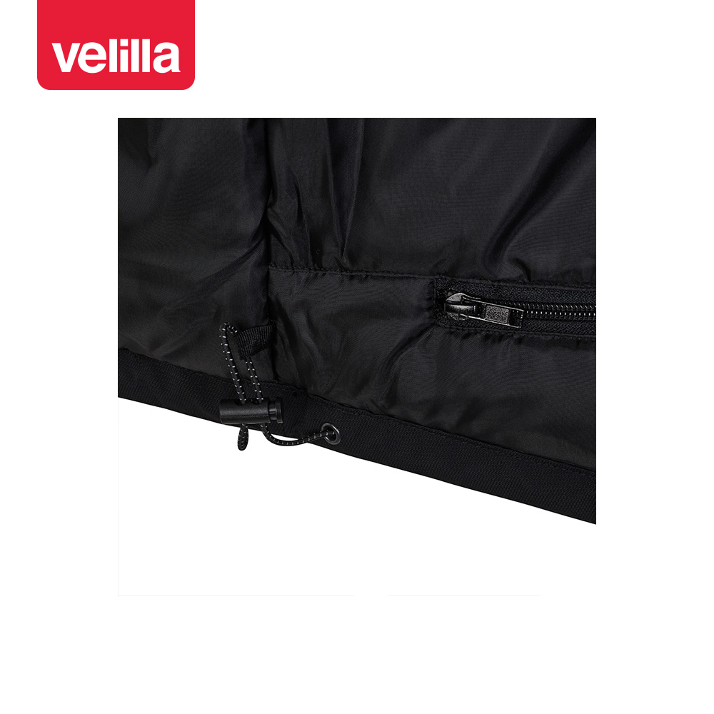 • Capucha oculta en el interior del cuello y cordón ajustable con stoppers