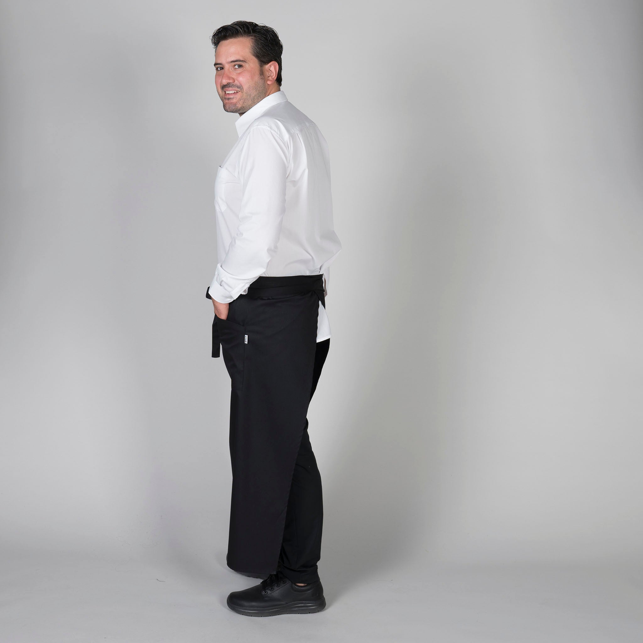 Descubre la combinación perfecta de estilo y rendimiento con nuestro Delantal Francés Abierto en Sarga de Poliéster, una opción imprescindible para uniformes en hostelería y comercio en general.