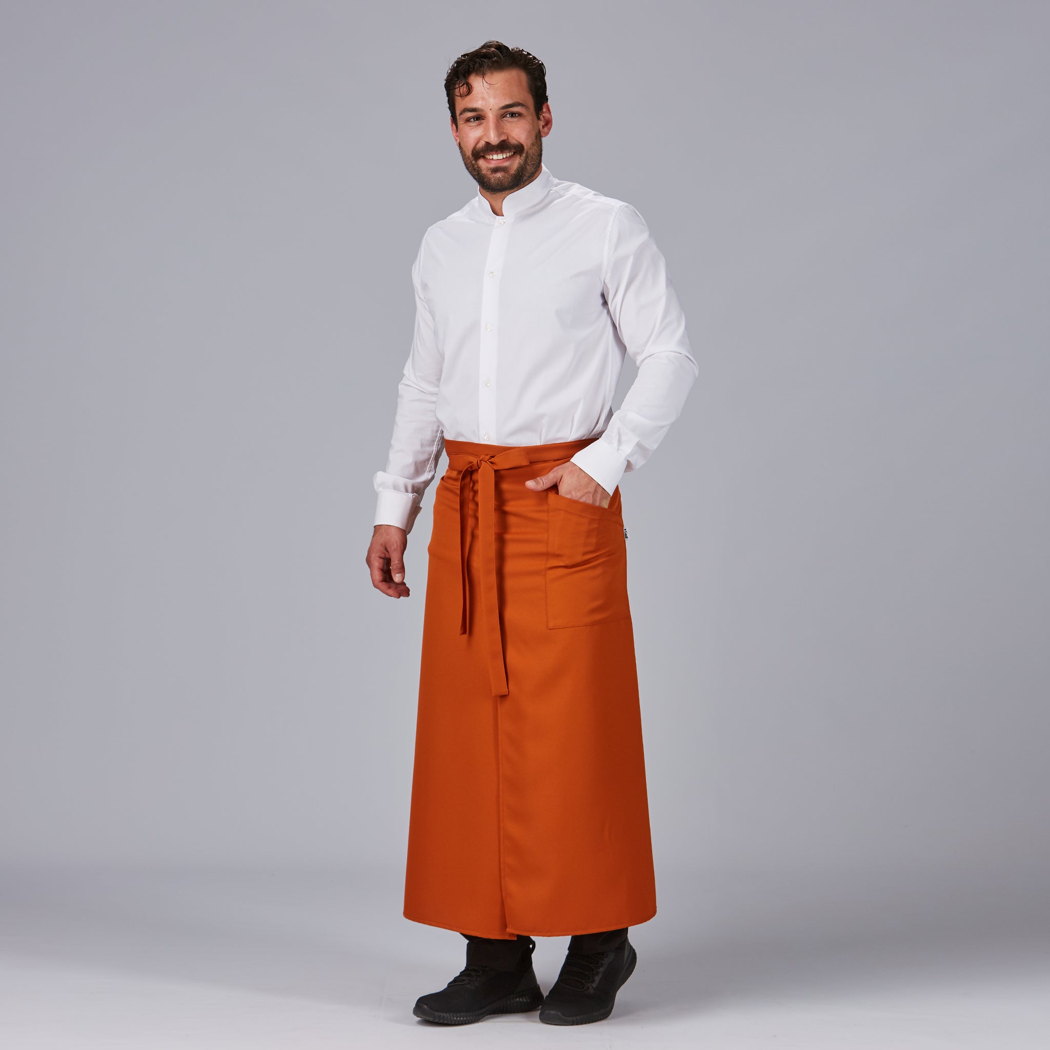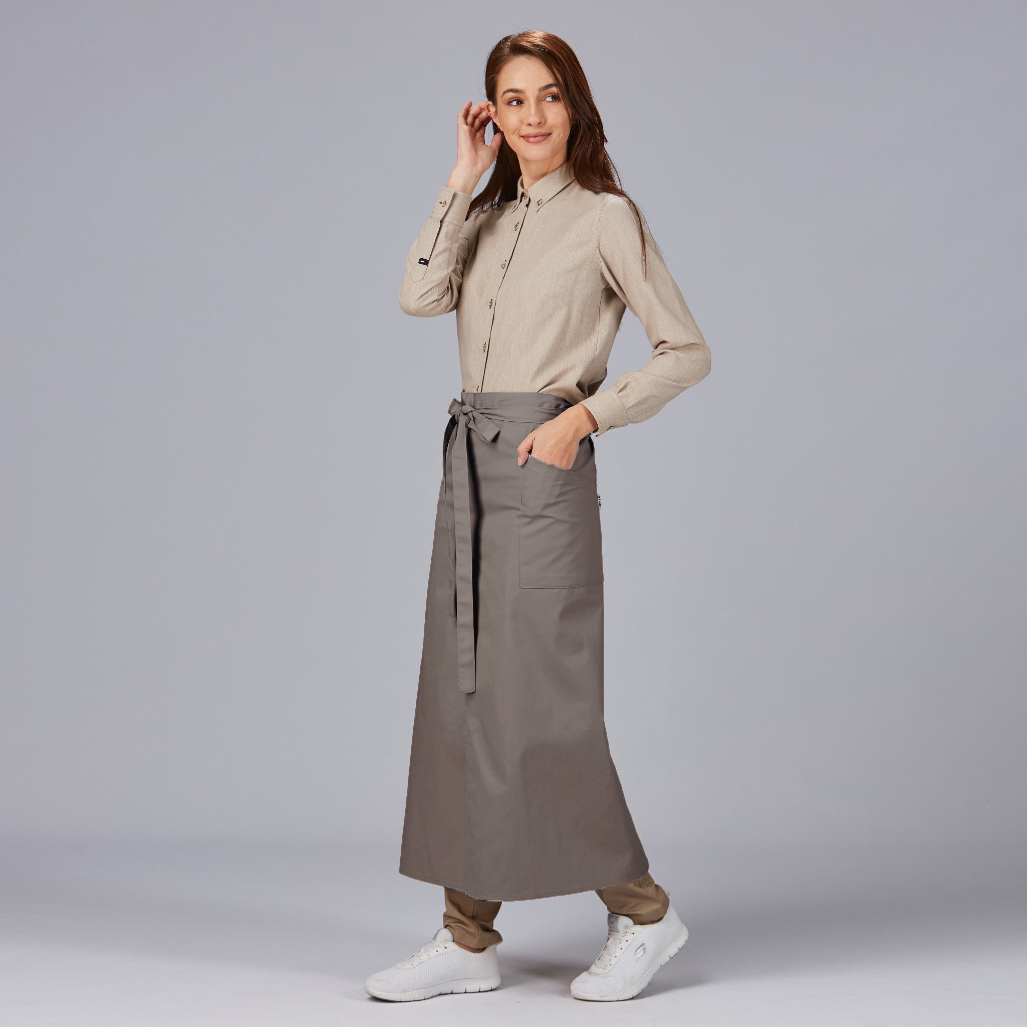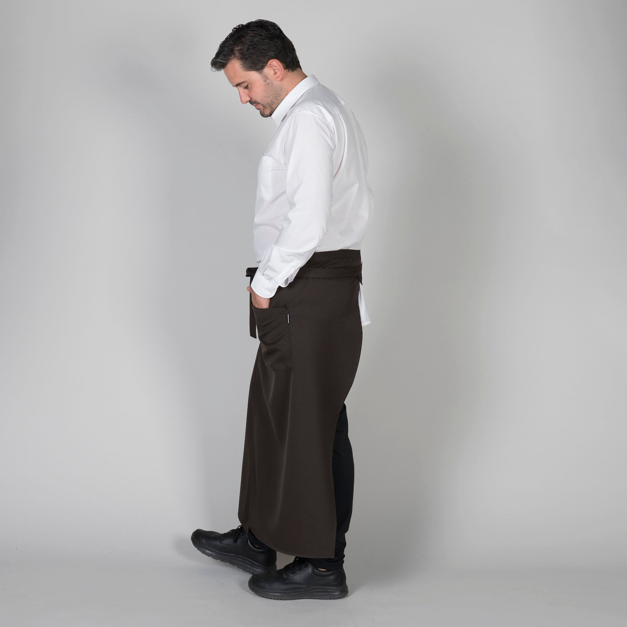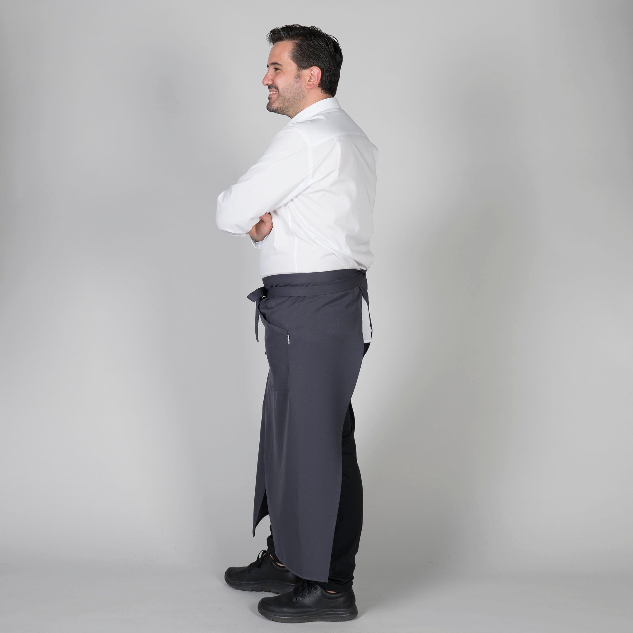 Este mandil es la elección ideal para camareros, chefs y profesionales de bares, restaurantes y cafeterías que buscan una prenda elegante y funcional. El poliéster proporciona un aspecto pulido y moderno, además de ser resistente a las manchas y fácil de cuidar.